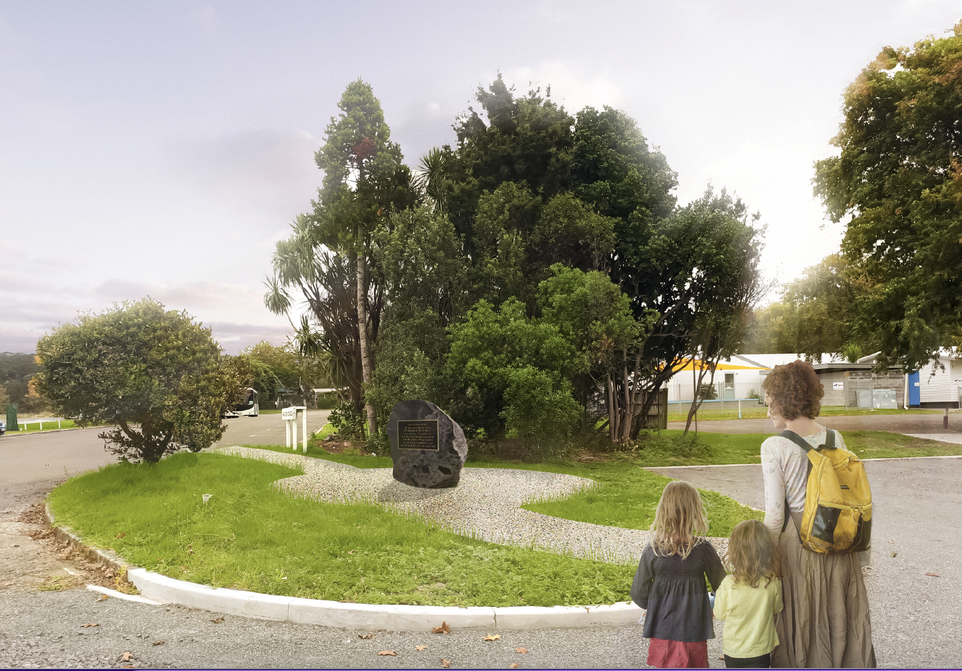 Xyst prepared the landscape concept and provided a graphic illustration of a new brass replica of the roll of honour fixed to a memorial stone outside the Community Centre.